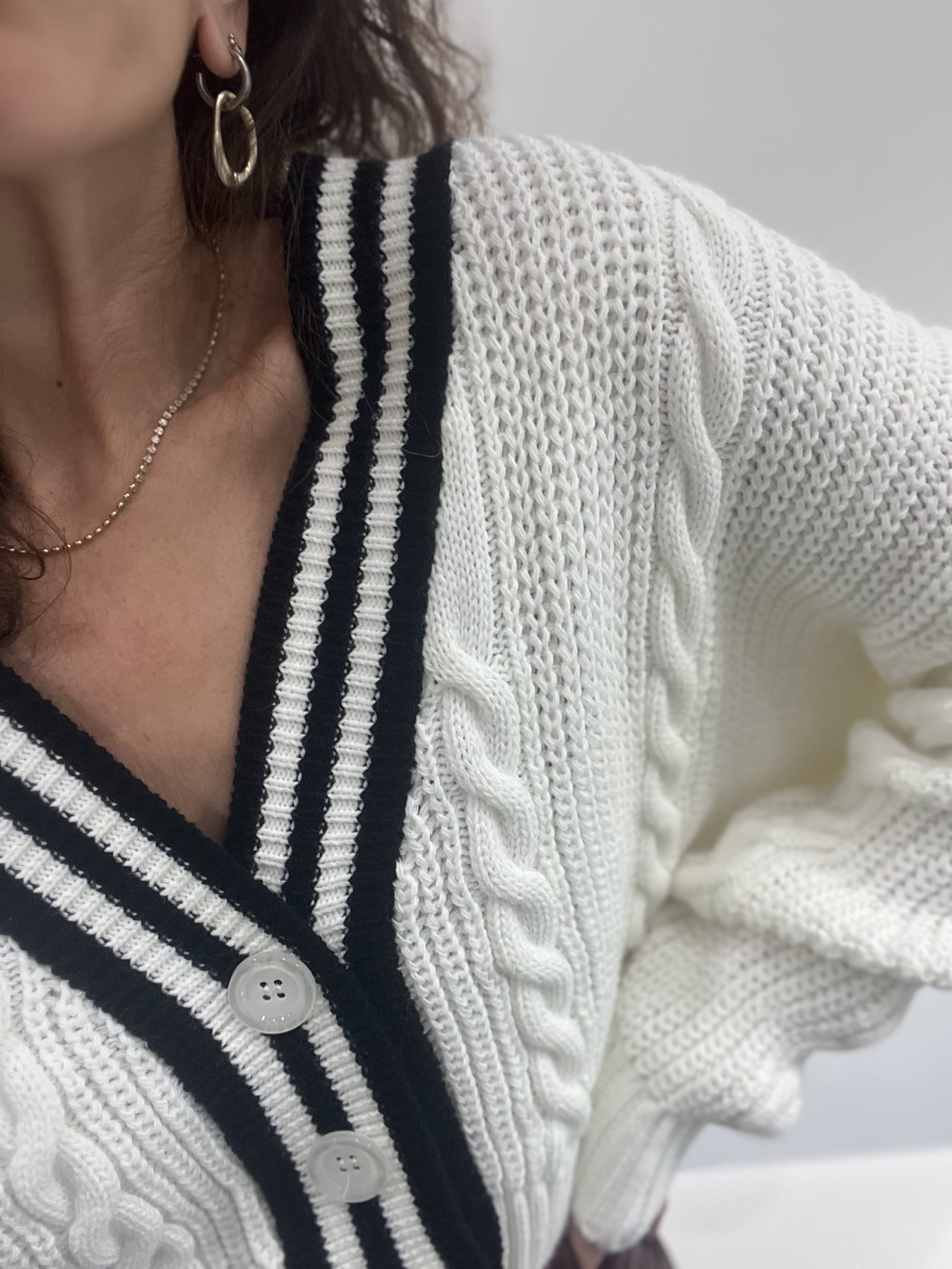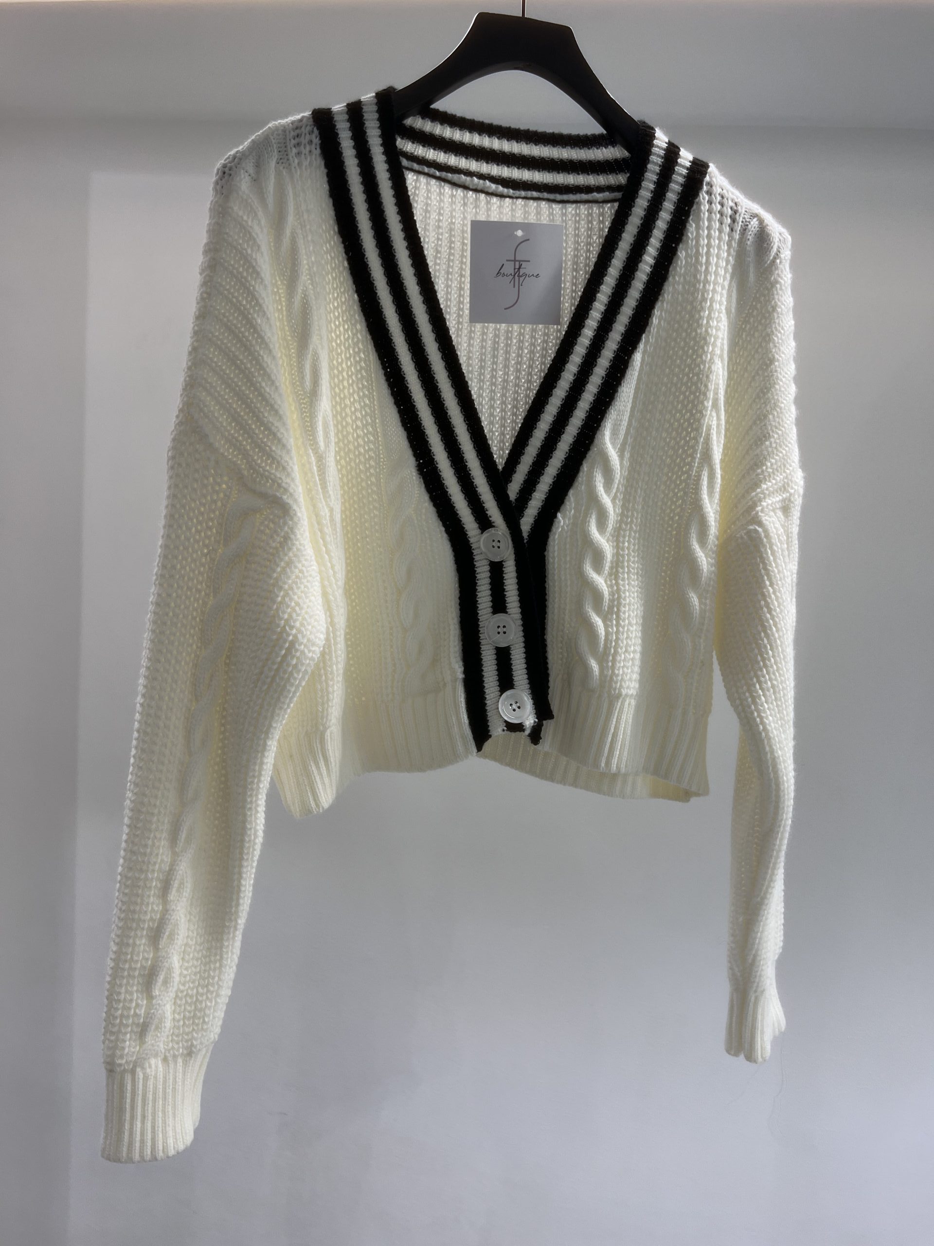Ζακέτα πλεκτή με ρίγα ασπρόμαυρη. ONE SIZE