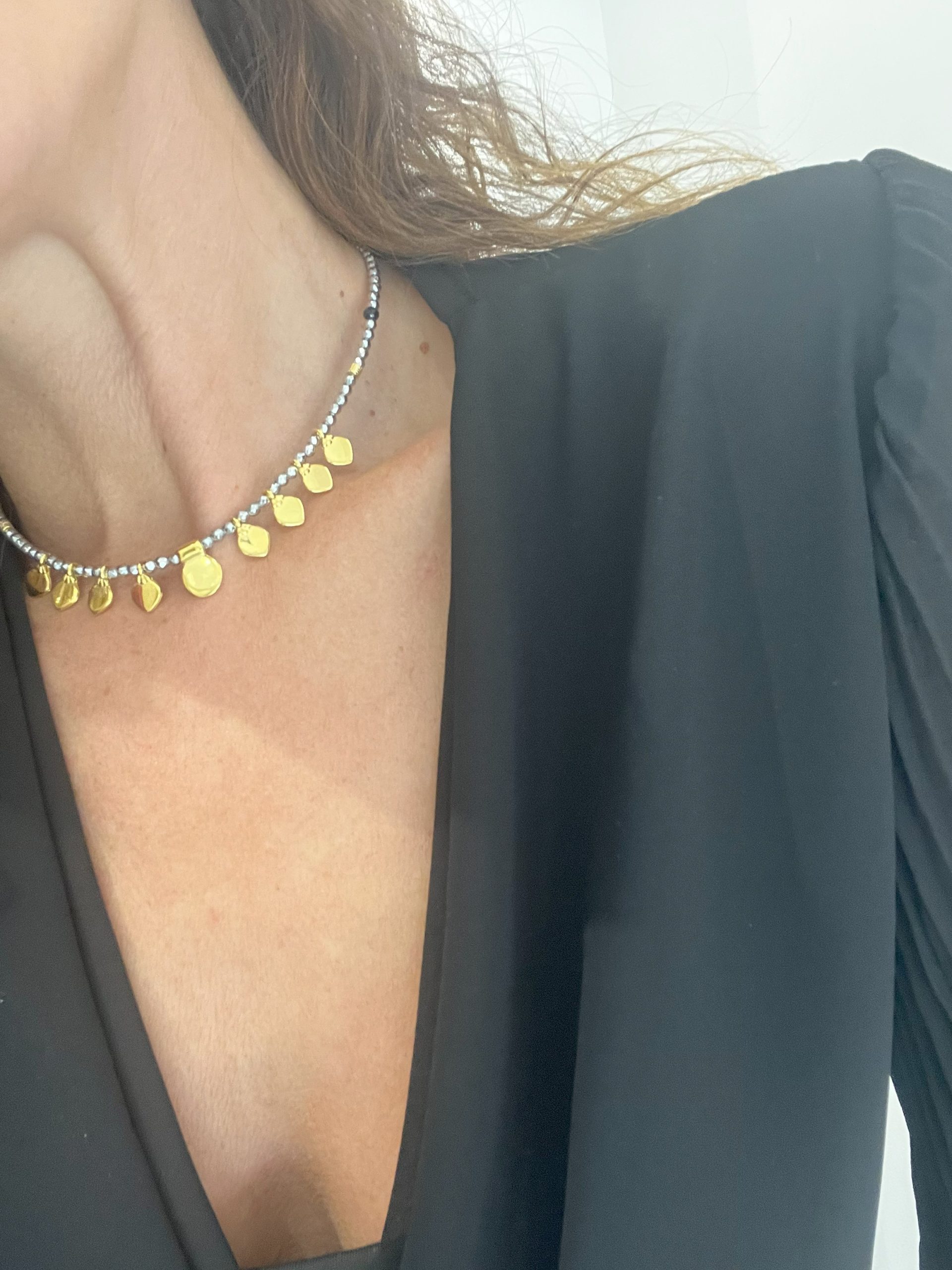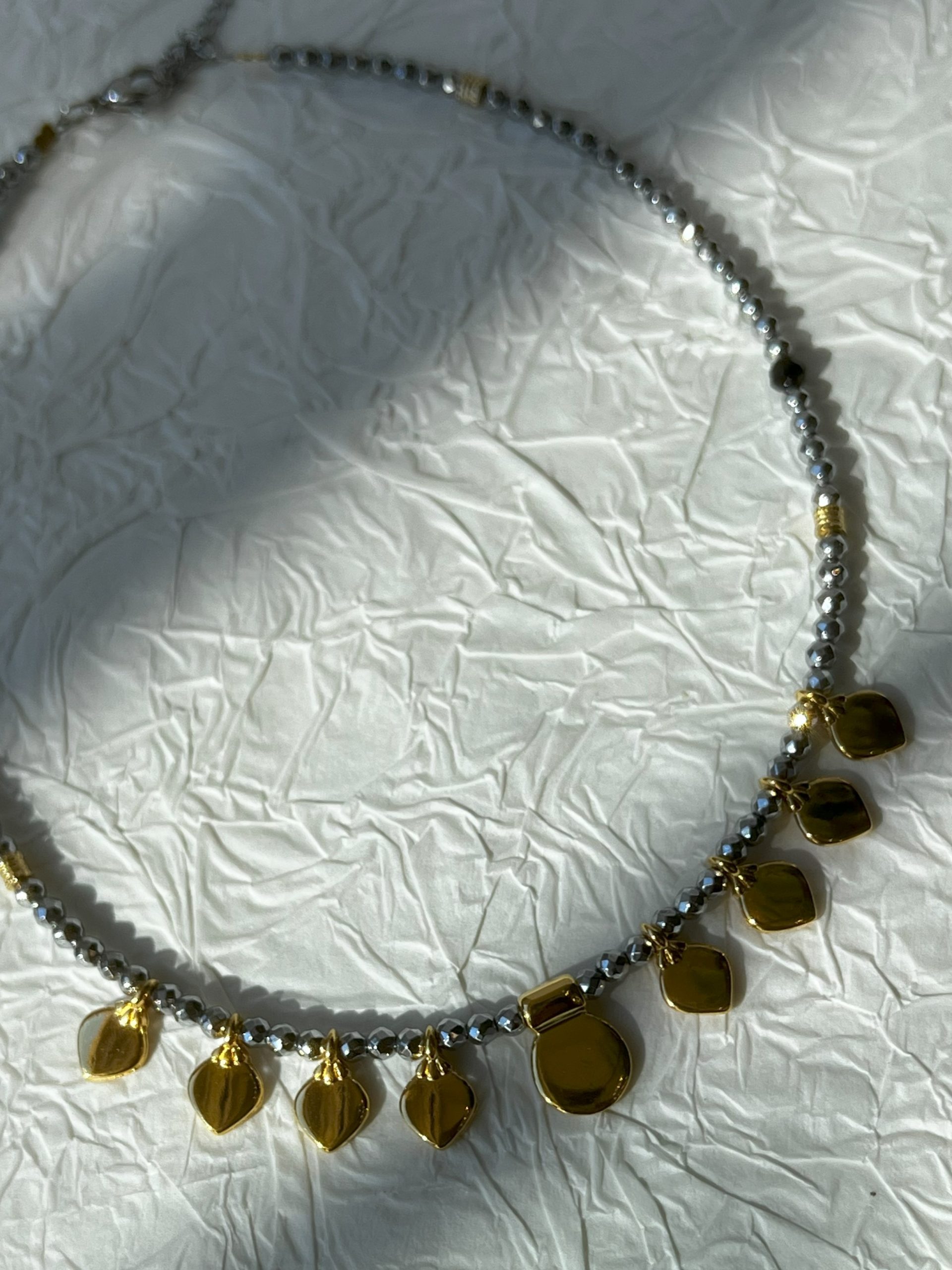 Χειροποίητο κολιέ με αιματίτη, και επίχρυσα στοιχεία.