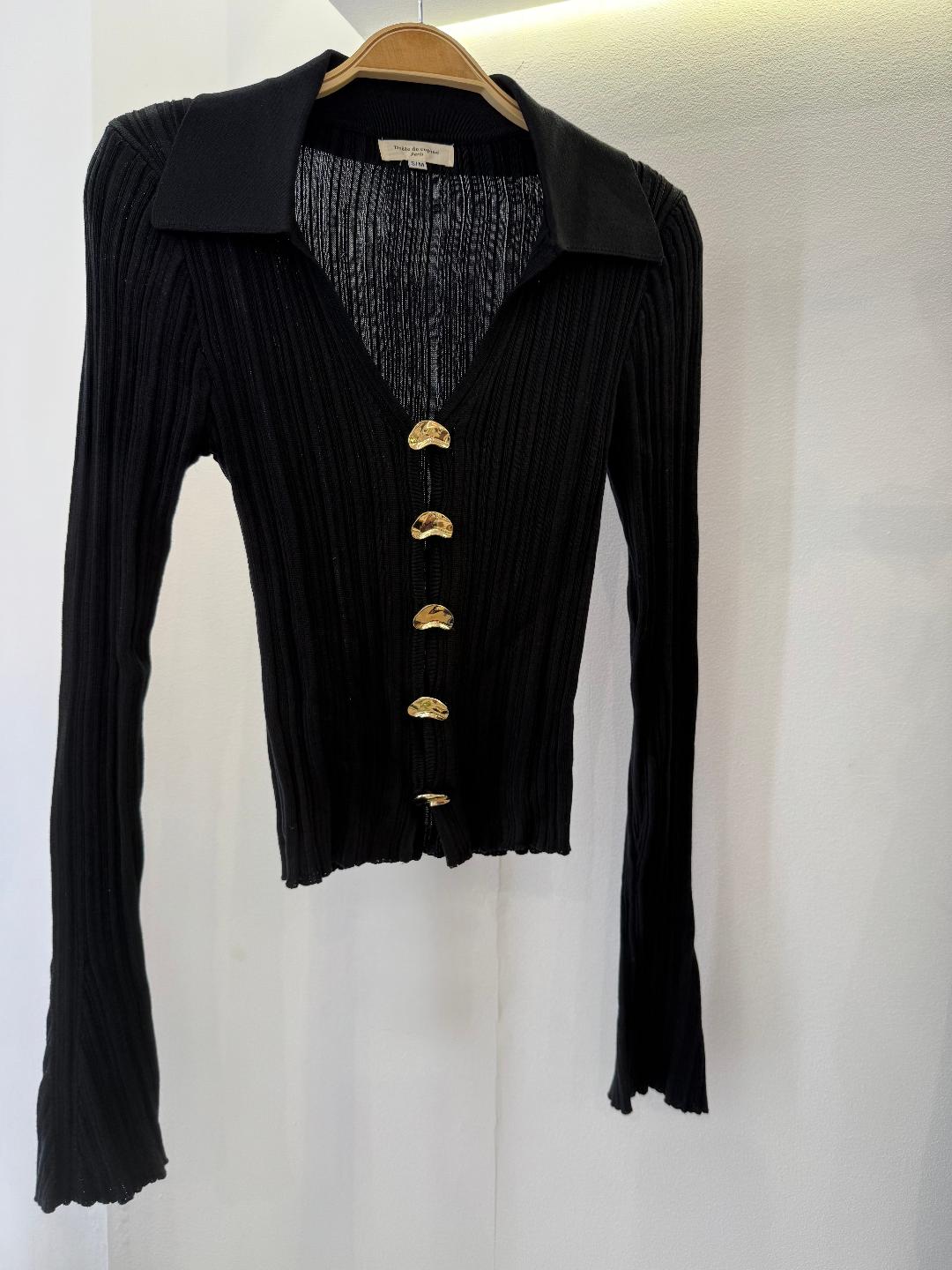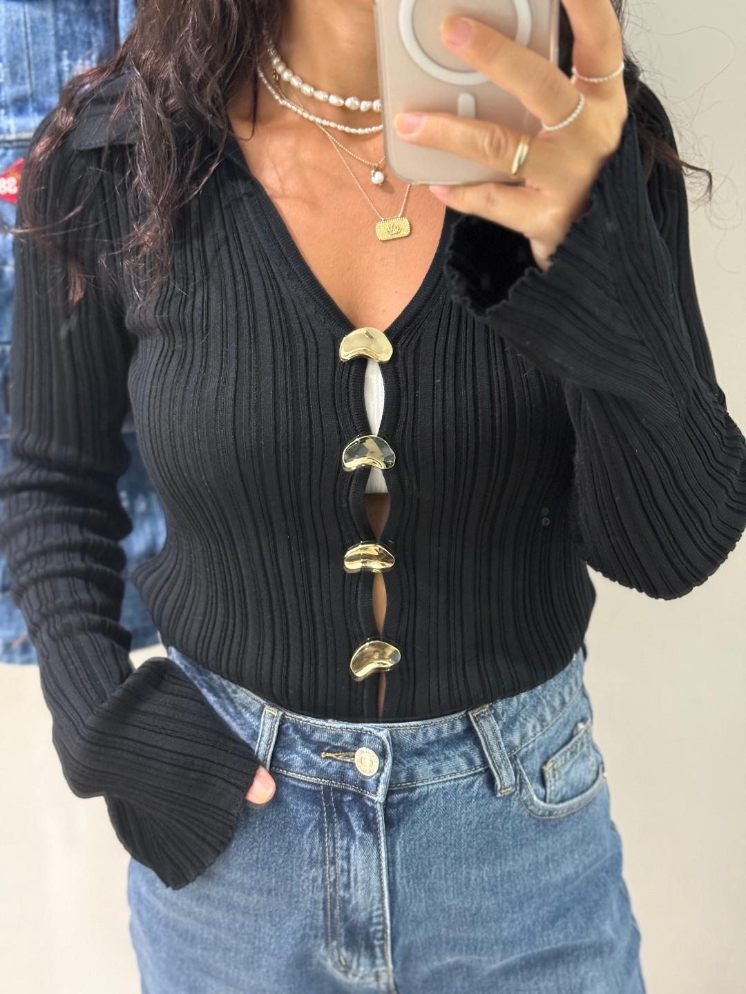 Top πόλο μακρυμάνικο. Kλείσιμο μπροστά με χρυσά κουμπιά.