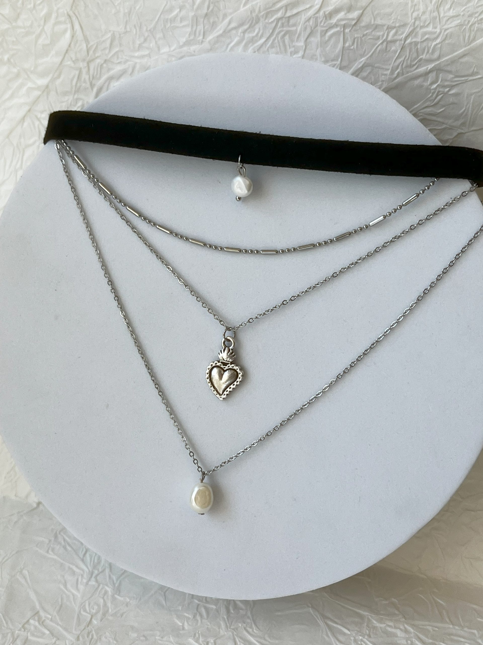 Χειροποίητο κολιέ πολλαπλό με αλυσίδες απο ατσάλι και σουέτ τσόκερ.