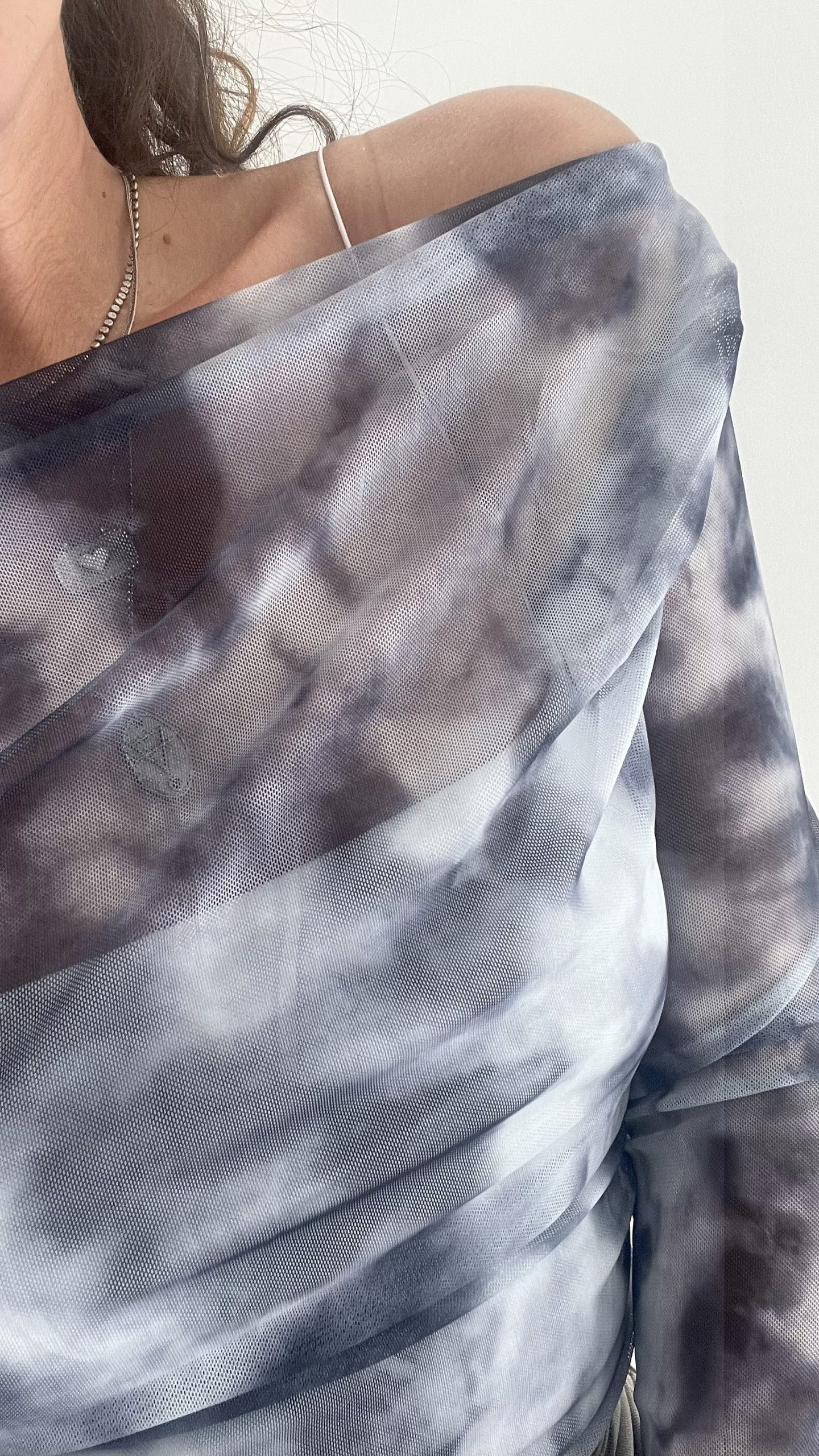 Τοπ one size με διαφάνεια απο τούλι και σούρα στα μανίκια.