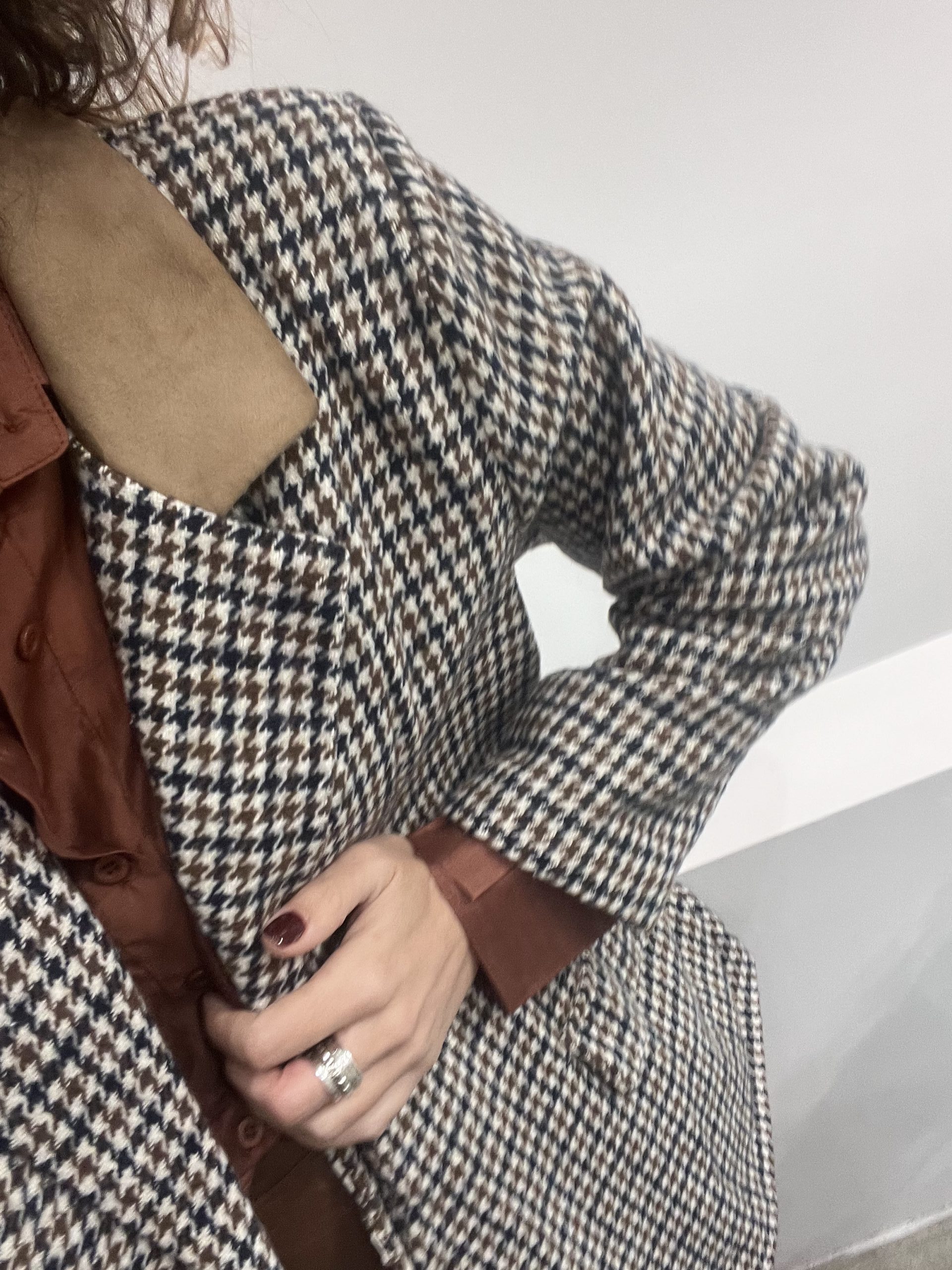Σακάκι pied de poule σε αποχρώσει μπέζ καφέ μπλέ. ONE SIZE