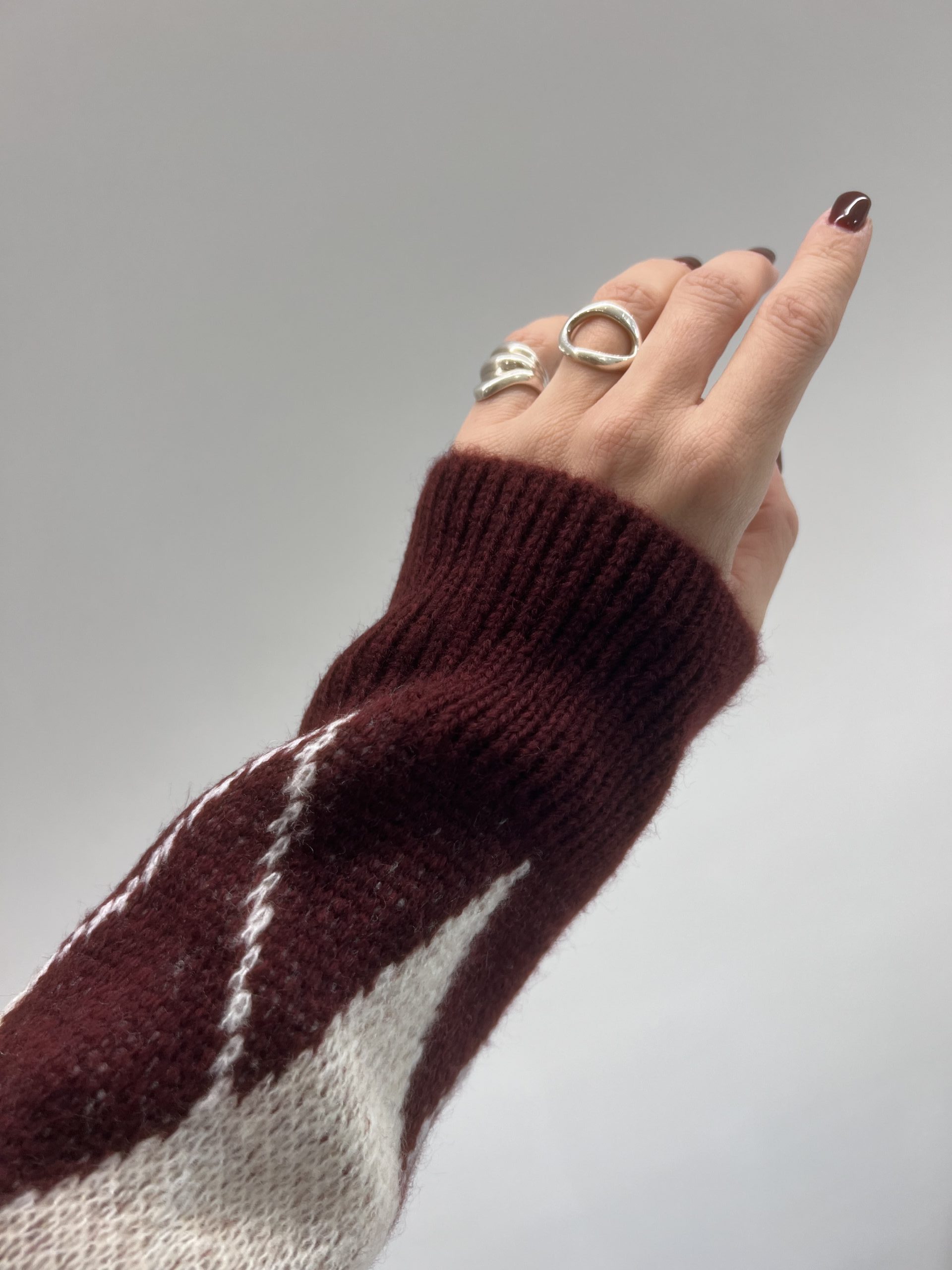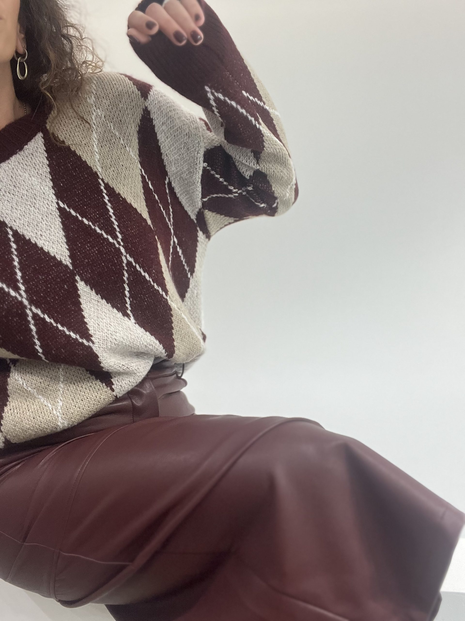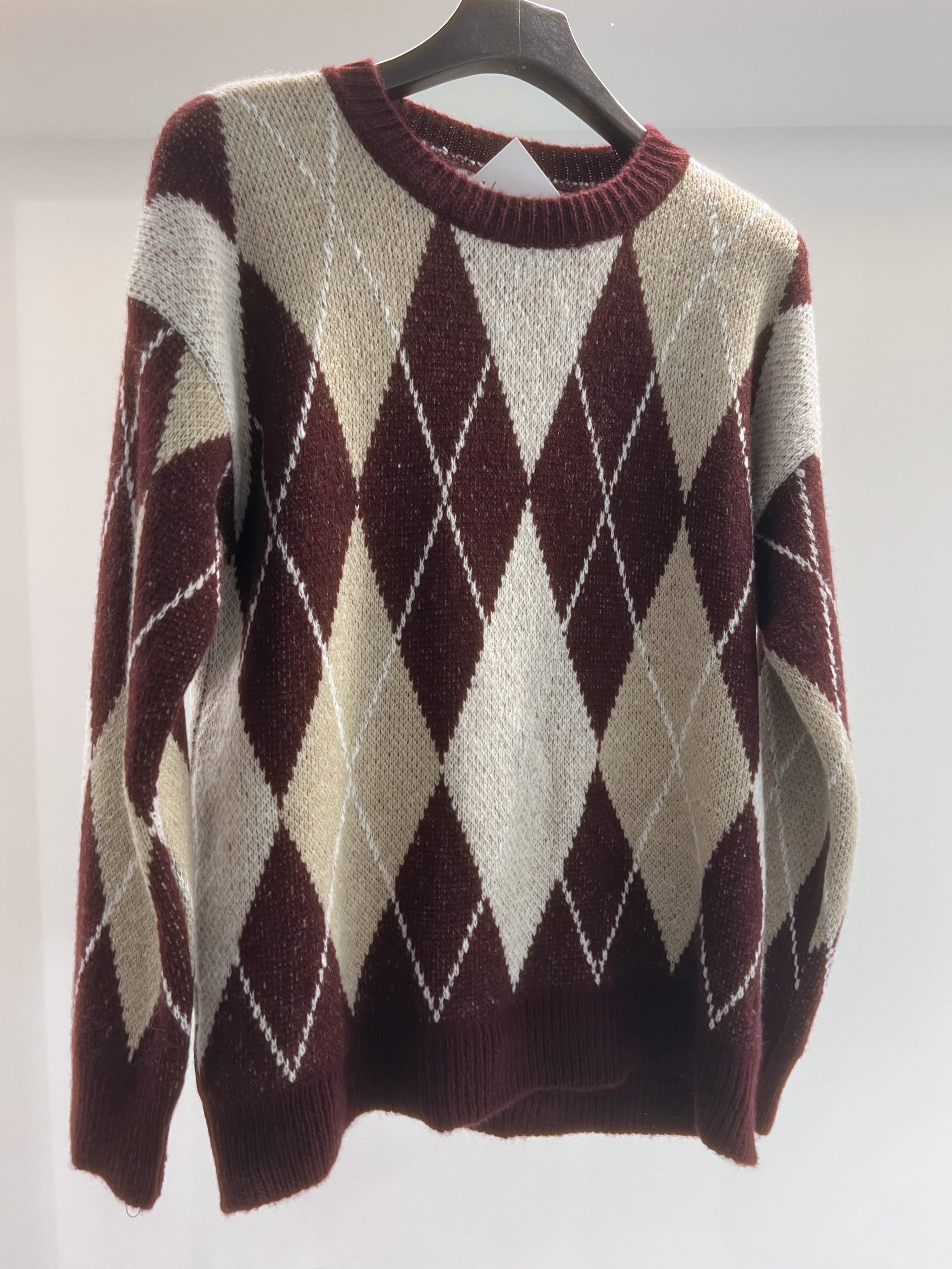 Μπορντό πουλόβερ με ρόμβους, one size.