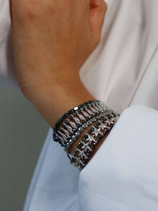 FJ SIMPLE LOOP BLACK STONE SILVER EARRINGS